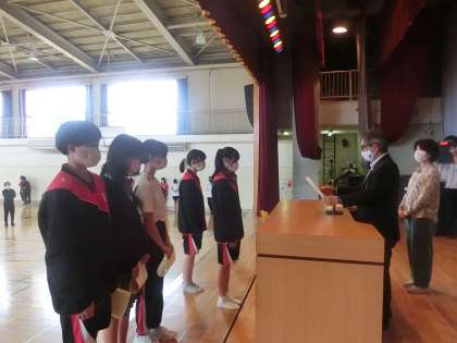毎週理科室で地道に活動をしている書道部ですが、出展した作品の成績はすごいです。日本武道館主催の第五十八回全日本書初め大展覧会で3年女子1名が特選、2年女子4名が特選、佳作に入選しました。また、創玄書道会主催の第五十八回全国学生書道展において3年女子1名が学年優秀賞、2年女子5名が特選、秀作に入選しました。