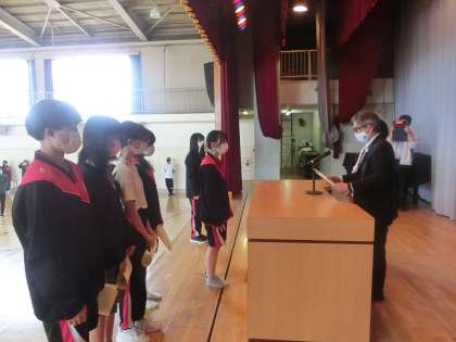 毎週理科室で地道に活動している書道部ですが、出展した作品の成績はすごいです。日本武道館主催の第五十八回全日本書初め大展覧会で3年女子1名が特選、2年女子4名が特選、佳作に入選しました。また、創玄書道会主催の第五十八回全日本学生書道展において3年女子1名が学年優秀賞、2年女子5名が特選、秀作に入選しました。素晴らしいですね。