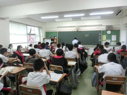 1年生の朝学活の様子です。運動会んぼ作戦会議?いいえそうではありません。移動教室のバスの座席を決めていました。こちらも間近に迫っていますね。