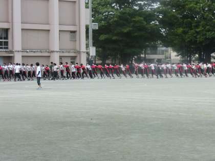 学年練習の最後は大むかで。どのクラスもスピードアップしました。明日が楽しみですね。