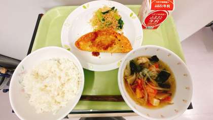 甘酸っぱいソースが好評でした。運動会の練習中は、糖質をしっかりとり、スパイスや酸味のある料理を取り入れて食欲増進を図るなど工夫しています。