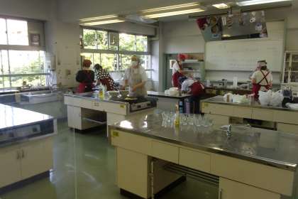 生徒の皆さんが勉強している間に、笑顔咲く街キッチンの皆さま(PTAのOB、卒業生、地域のボランティアの皆さま)が夕食の準備をしてくださっています。今日のメニューはカレーライス。おいしそうな香りが漂ってきました。