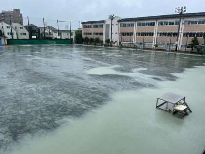 昨夜からの雨で校庭も水浸しになってしまいました。