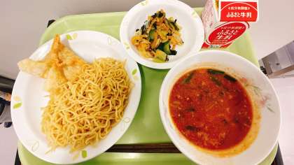 トマトを使ったさっぱり担々麺が、好評でした。今年の1年生は、特によく食べてくれます。