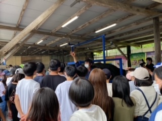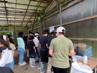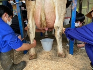 レクチャーを受け、手をしっかり洗った後はいよいよ乳搾り体験です!