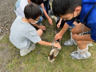 動物と触れ合います。