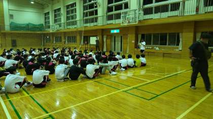 レクが始まります開会式で実行委員から説明があとラジオ体操をします