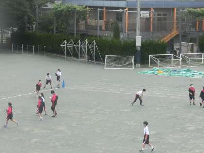 雷雨で水浸しになったあのグランドが回復し、6時間目には保健体育の授業が行われました。