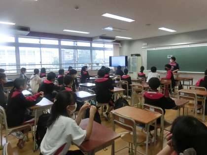 本日の放課後に臨時の生活委員会を開きました。今週予定している学舎の小学校での「あいさつ運動」について確認をいたしました。