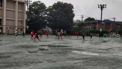 午後から雨が降ってますが、サッカー部が活動しています。