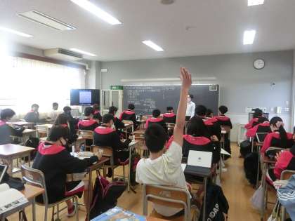 3年生の社会の授業では、日本国憲法の基本原理についての学習でした。さすが3年生。積極的に手を挙げて発言していました。
