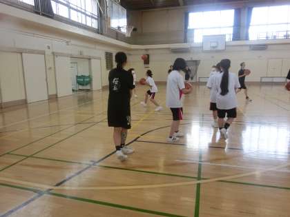 バスケットボールの練習風景です。女子は明後日に大会を控えています。全力を出し切りましょう。
