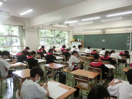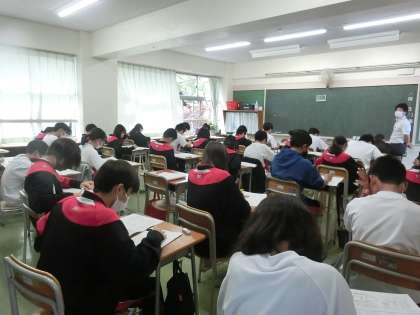 今朝は数学の積み重ねテストを実施いたしました。次回は16日(木)に社会の積み重ねテストを実施いたします。なお、3年生は明日14日(火)に5教科の実力テストを実施いたします。