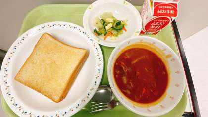 さくらの学び舎、笹原小学校の栄養士さんおすすめメニューでした。優しい酸味のはちみつレモントースト、香りも楽しめるバジルドレッシングサラダのどちらも好評でした。