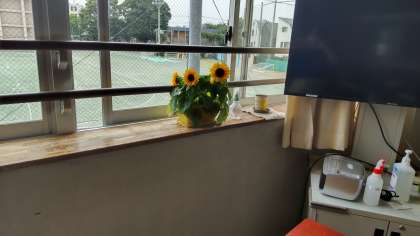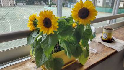 係りの生徒が毎日世話をしてきたひまわりがきれいに咲きました