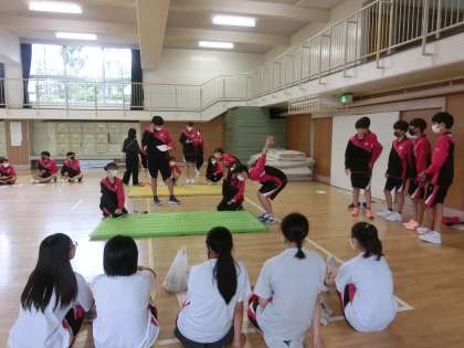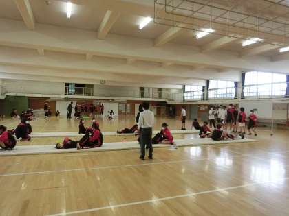 格技室では上体起こしと立ち幅跳びが行われました。