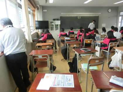 3年生の数学の少人数授業の様子です。今日は図形の長さや面積と平方根の関係について考える授業でした。世田谷区教育委員会より講師の先生にご来校いただきご指導、ご助言をいただきました。