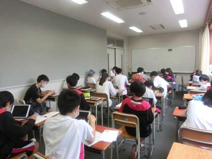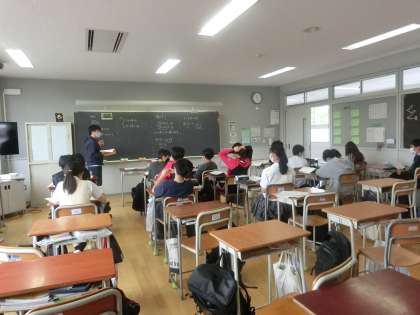 2年生の数学の少人数授業です。今日は連立方程式について学習しました。どの生徒も懸命に問題に取り組んでいました。