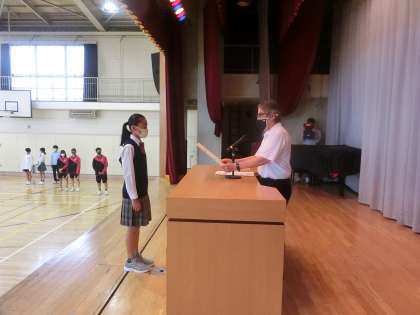 1年生女子が東京都中学校陸上競技大会で100走、走り幅跳びでともに優勝しました。2つとも1位とはすごいですね!