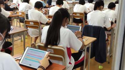 本日、美術の積み重ねテストが実施されました。2年生はタブレットを使って回答していました。CBT(Computer Based Test)は初めてでしたが、大きなトラブルなくできました。