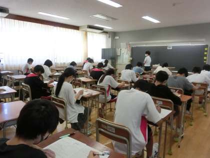 今朝は家庭科の積み重ねテストを行いました。明日は技術を実施いたします。