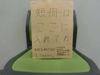 今週は七夕ウィークの生徒会企画で、生徒会が用意した短冊に願い事を書いて袋に入れておくと、後で生徒会執行部が笹につけてくれます。