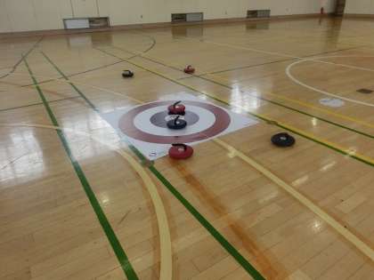 今日の1時間目は、主にほっとルームを利用している生徒を中心に、体育館でフロアカーリングを行いました。氷上で行うカーリングのフロア版で、2チームに分かれてキャスターのついてストーンを的に目がけて転がします。的の中心から近いストーンを置いたチームが得点できるのは、実際のカーリングと同じです。やってみると意外に難しい様子でしたが、互いに声をかけあい作戦を立てながら楽しくゲームを進めることができました。