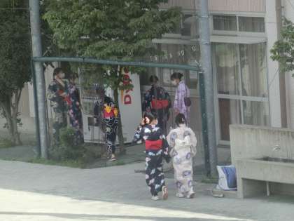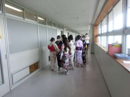 今日は年に一度の浴衣を着て授業を受けてもよい日(ゆかたの日)です。朝からたくさんの生徒がゆかたで登校していました。