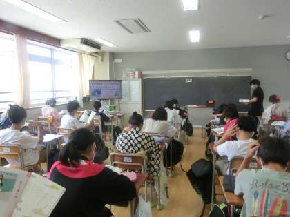2年生は、内容項目C(18)国際理解、国際貢献で「むこう岸には」を題材に他者や他国の文化を尊重することを主題に授業を行いました。