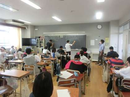 3年生の数学の少人数授業です。今日は解の公式をつかって2次方程式を解きました。