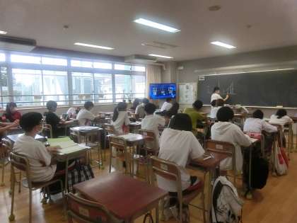 2年生の理科の授業です。今日は期待の水蒸気量の授業でした。こちらも3年生に負けず劣らず集中して取り組んでいました。