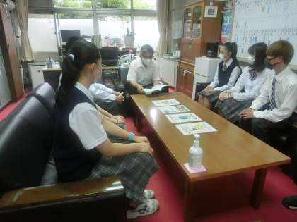 今日の昼休みに、生徒会執行部が校長先生をおたずねして、懇談会を開きました。生徒会活動の現状と今後の課題について、校長先生からご指導、ご助言をいただきました。