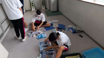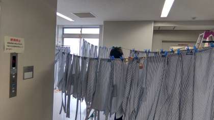 今日で給食が最後でした。係り生徒が洗濯してくれました。明日までに乾いて欲しいです。三年生は高校の資料も整理しました