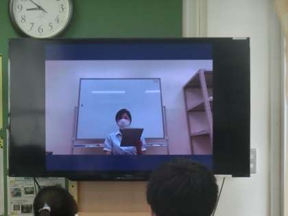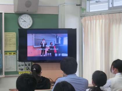 校長先生のお話のあと、生徒支援部長の先生からの夏休みの生活について注意、そして最後に音楽の先生の歌唱による校歌を配信いたしました。