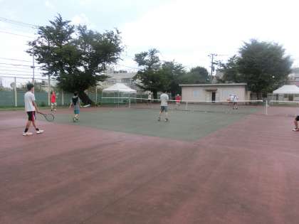 テニス部は一面のコートを効率よく利用するため、男子と女子が時間で皇太子活動しています。今日の午前の前半は女子、後半は男子が練習しました。