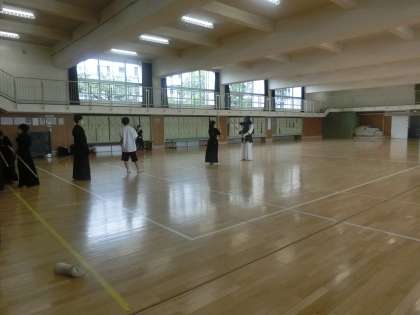 剣道部の稽古の様子です。外部指導員の先生からまわいの取り方や打ち込みの基本的な姿勢を指導していただきました。