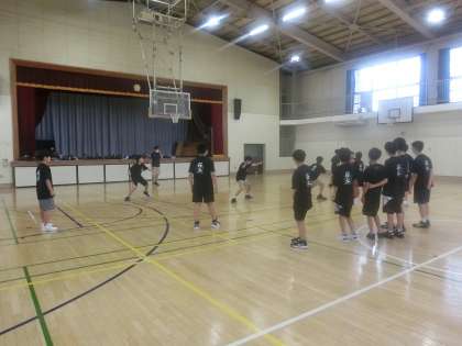 午後の体育館はバスケットボール部が練習を行いました。15時まで小学生が体験を行い、その後はフォーメーション練習を行いました。