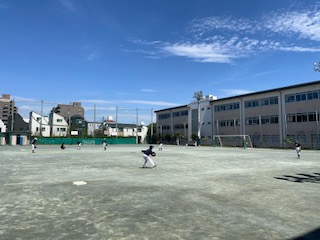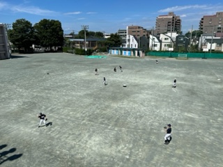 野球部の練習ではコーチの方に来ていただき、守備練習を中心に行いました。