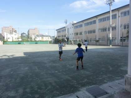 今日も気温の上昇が予想されます。サッカー部は早朝から練習を行いました。