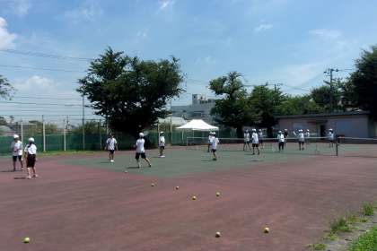 女子テニス部です。熱中症に気を付けながら、基礎練習に取り組みました。