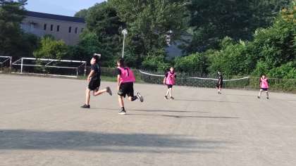 今朝の朝練は、ラジオ体操、ランニング、三色おにをしました。