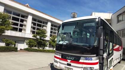 河口湖の宿舎を出発しました。三泊お世話になりました。