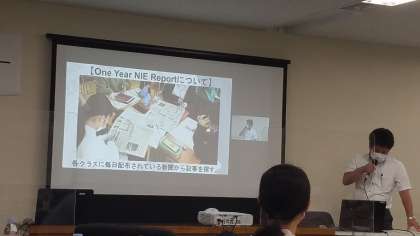 桜丘中の朝原先生が、日比谷の会場で、多くの先生方を前に、新聞を活用した実践を堂々と発表しました。たいへんよい発表で好評でした。