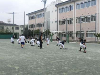 今日は本校の校庭で東京農業大学第一中学校の野球部と本校の野球部が合同で練習を行いました。夏の研修大会は合同チームで参加する予定です。