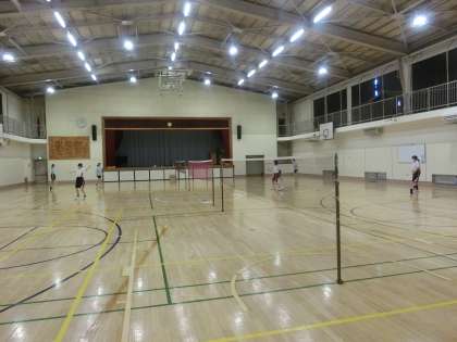 午後の体育館はバドミントン部が練習を行いました。基礎となるフットワークの様子です。