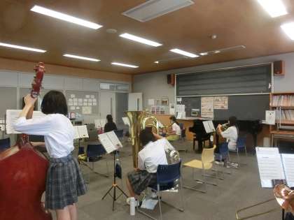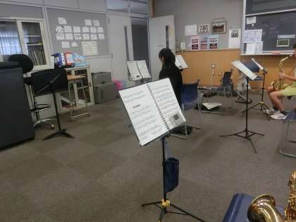 昨日から練習を再開した吹奏楽部。2会場に分かれ隙間をあけての練習となりました。