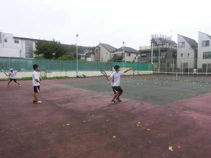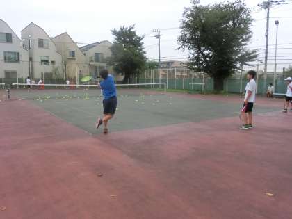 明日に大会を控えている男子テニス部は、早朝から練習に励みました。