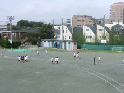 陸上競技部は練習にあたり400mトラックを想定したコーナーと直線走路をつくってから練習を始めました。