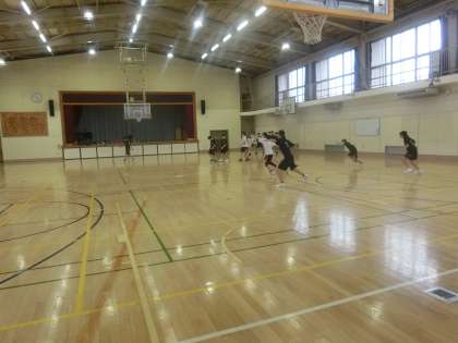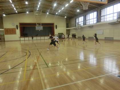 バスケットール部の練習風景です。まずは基礎練習からスタートです。
