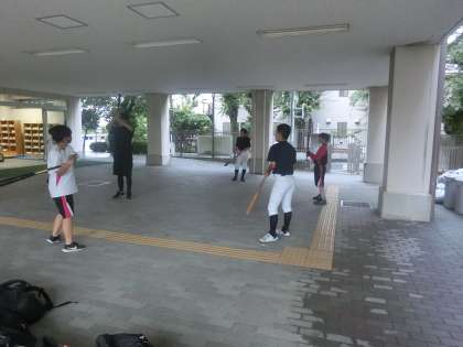 野球部はピロティで素振りの練習を中心に行いました。